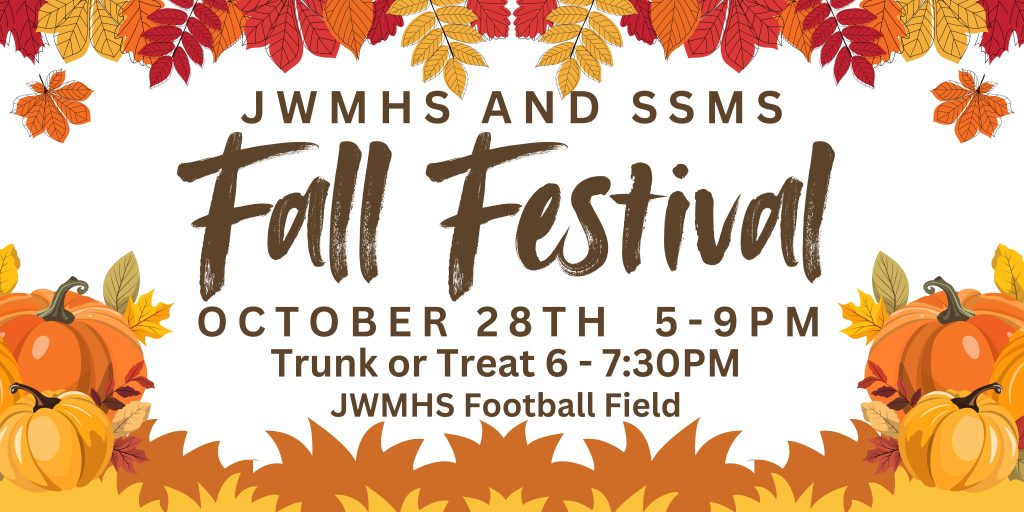 - Fall Festival: Join us on October 28th for our Annual Fall Festival at the JWMHS Stadium!